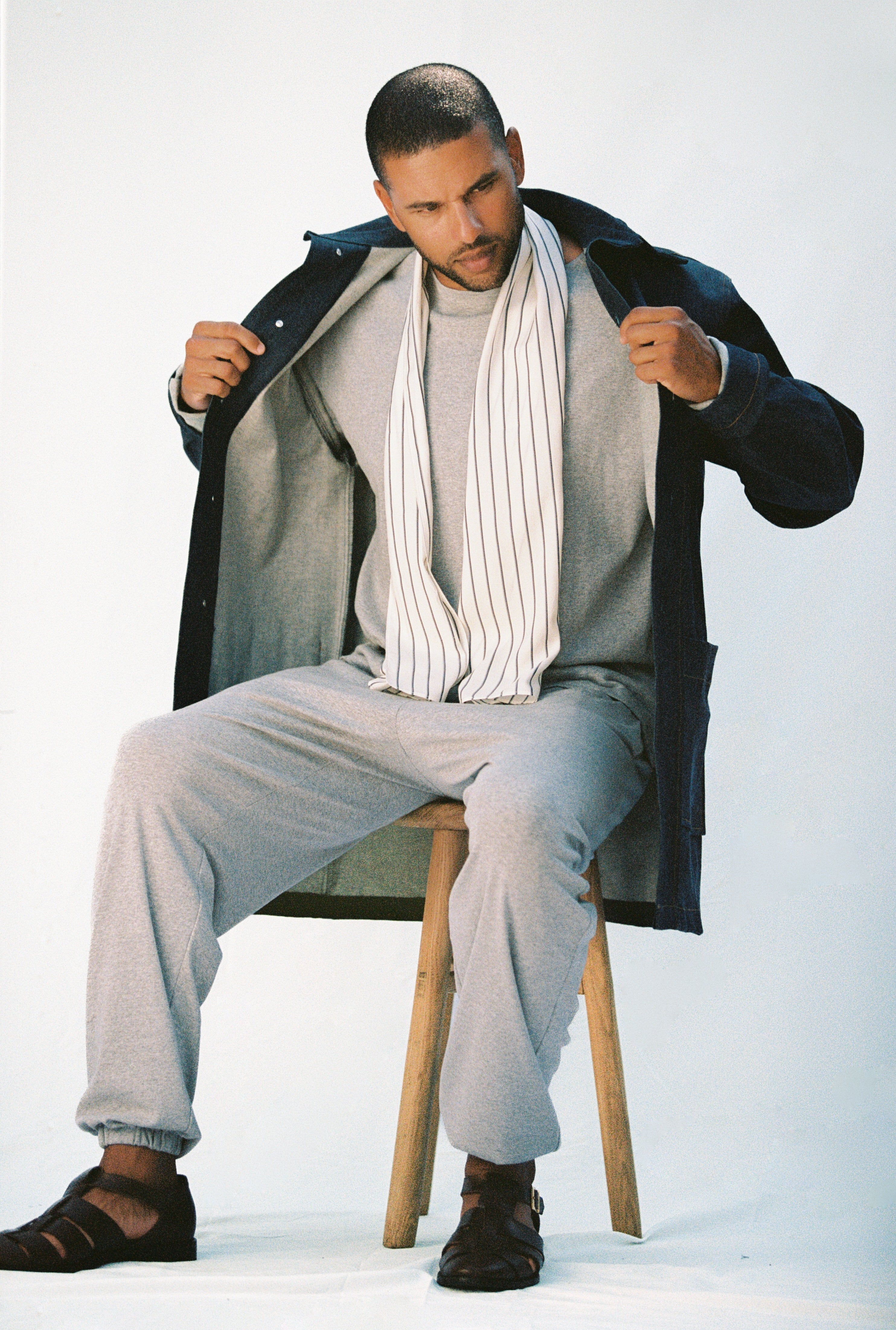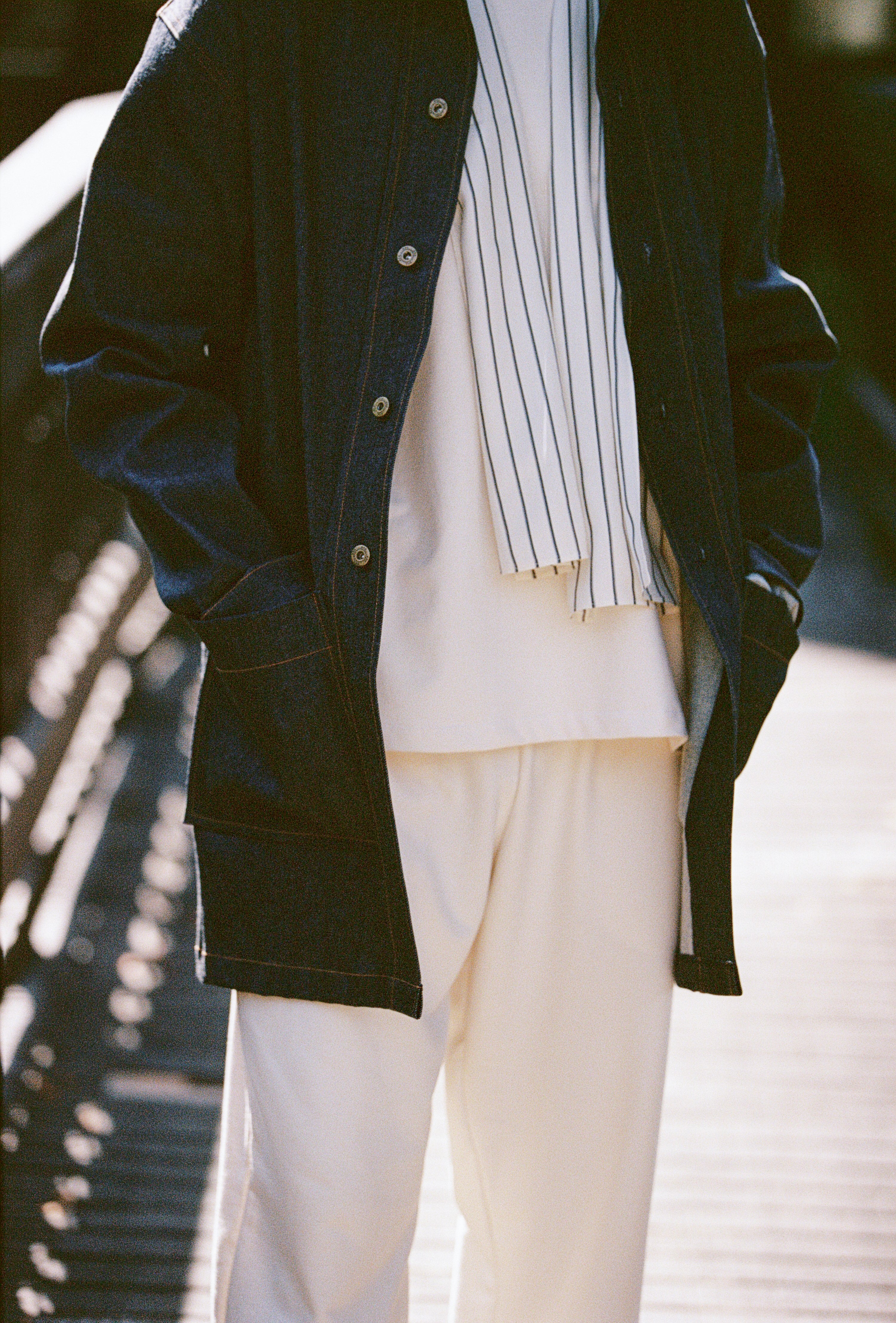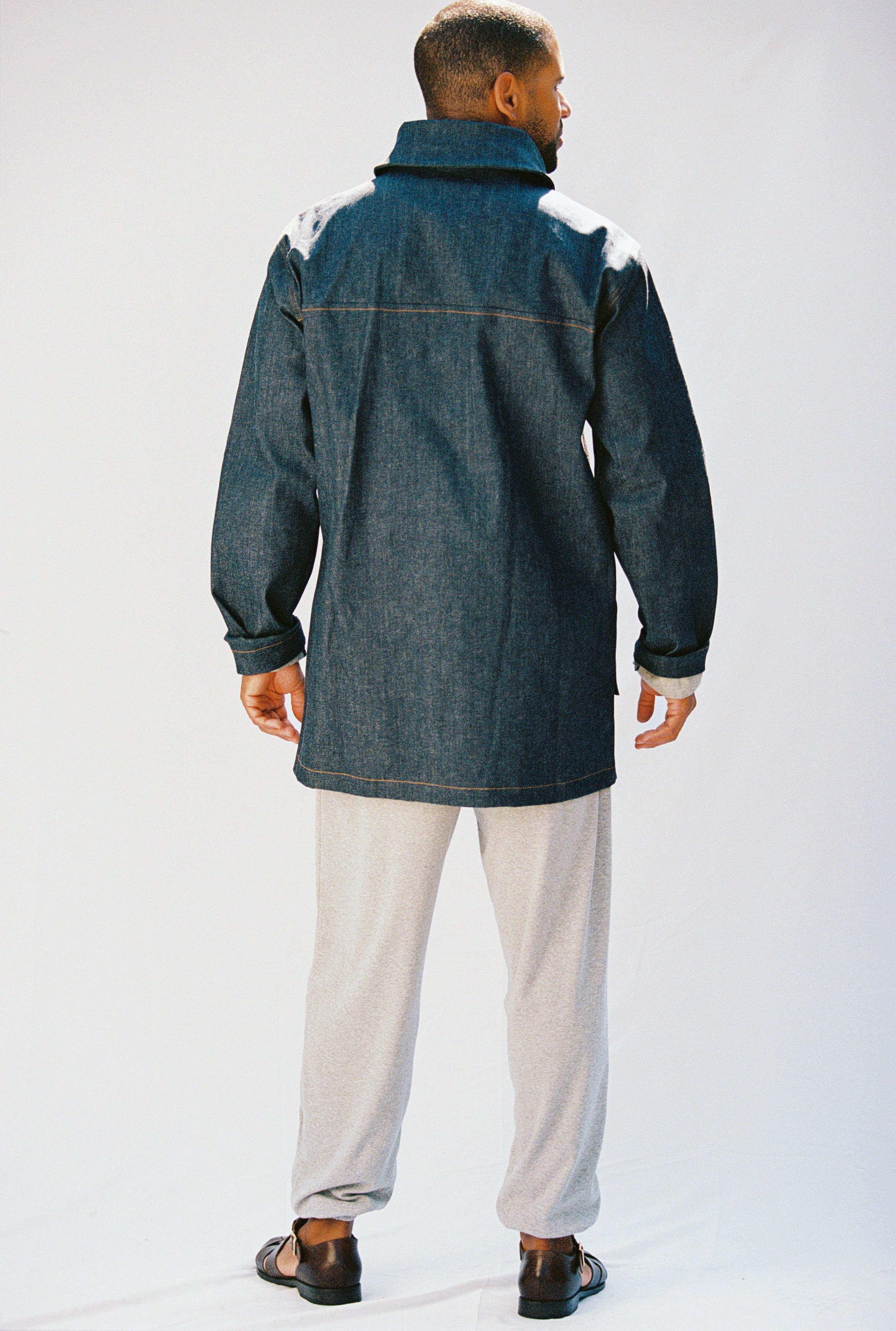 Introducing the Nico Denim Jacket — made from 100% organic Italian denim. Inspired by the French chore coat. You can throw it over sweats or wear it with our Una paperbag pants. It's true to it's roots — it will always work for you.