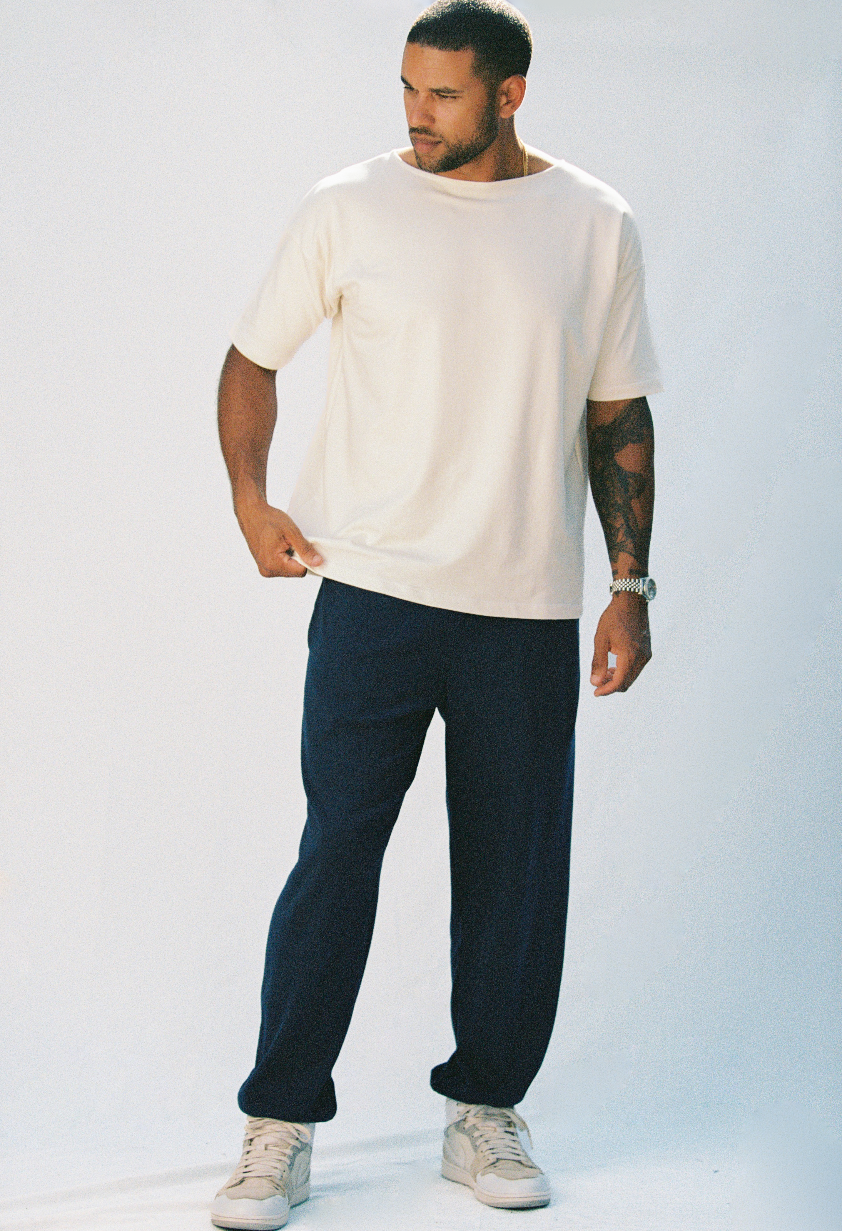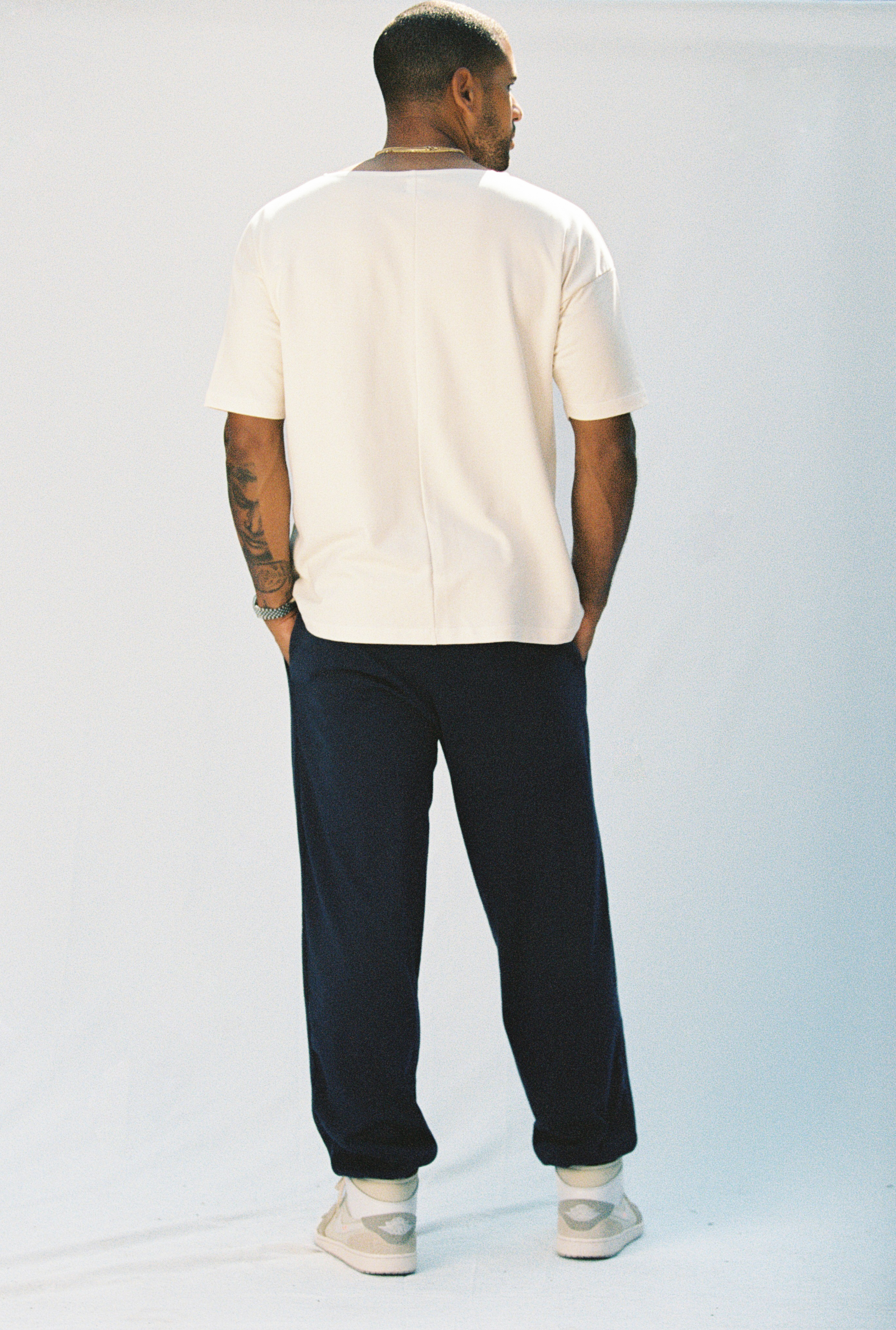 Introducing the Luca Sweatpants made of 100% organic ribbed knit cotton with a 7.5oz fabric weight and french seam pockets. They're beautifully tailored and easy to wear — we have them on all year long. Dress them up with our denim jacket and silk scarf or pair them alone with the Khai Tee for a relaxed look.