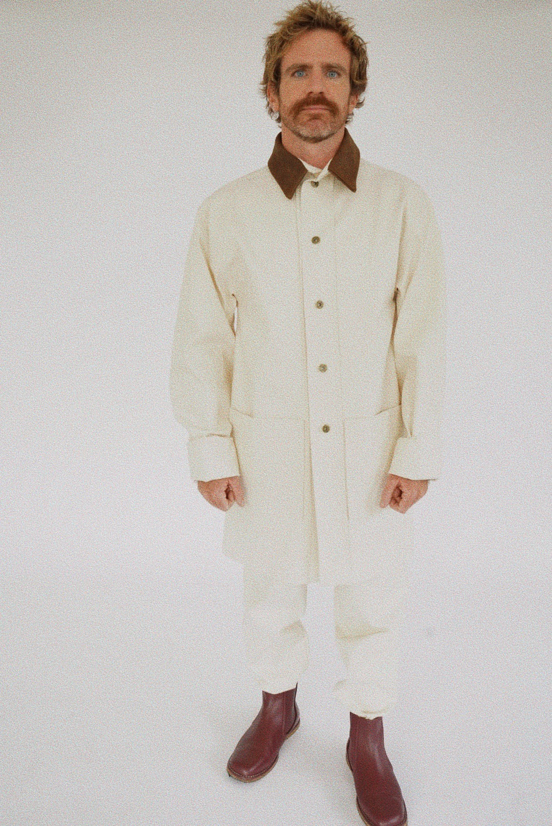 Introducing the Nico Denim Jacket — made from 100% Italian Organic denim with a 10oz weight and Italian leather collar. Inspired by the French chore and classic Barn coat. You can throw it over sweats or wear it with our Una paperbag pants. It's true to it's roots — it will always work for you.