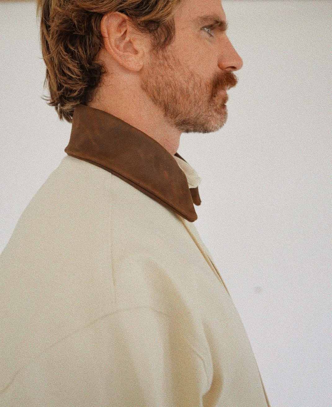 The Nico Denim Jacket in Natural with Italian Leather Collar