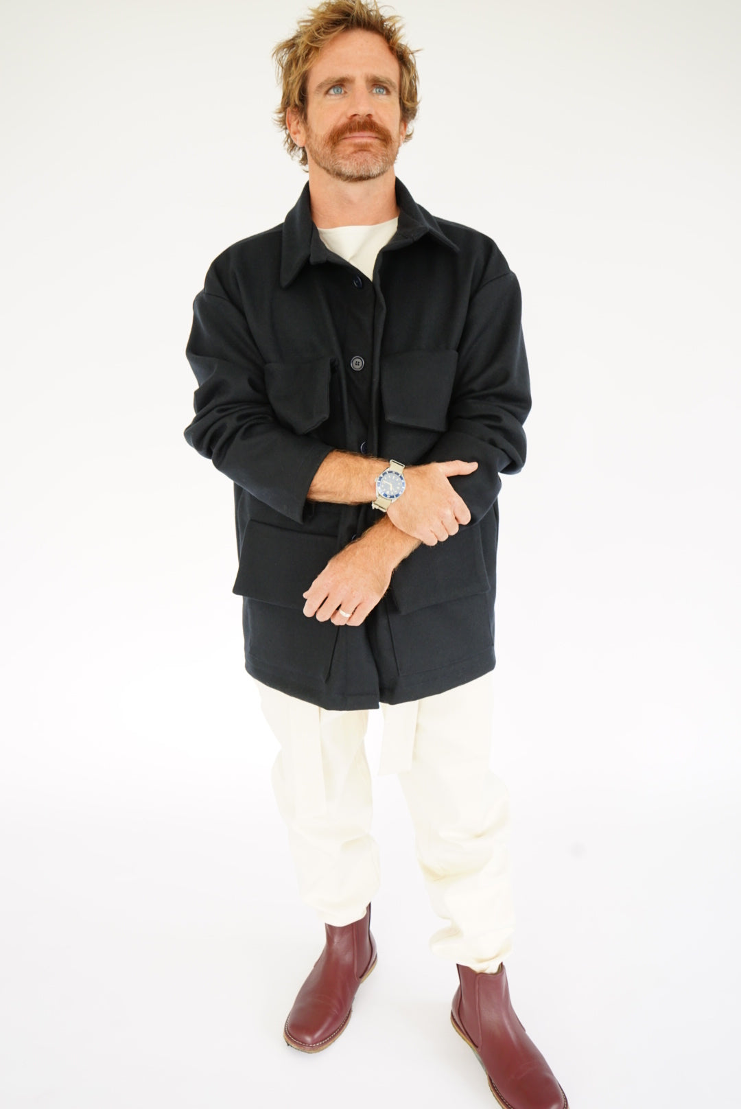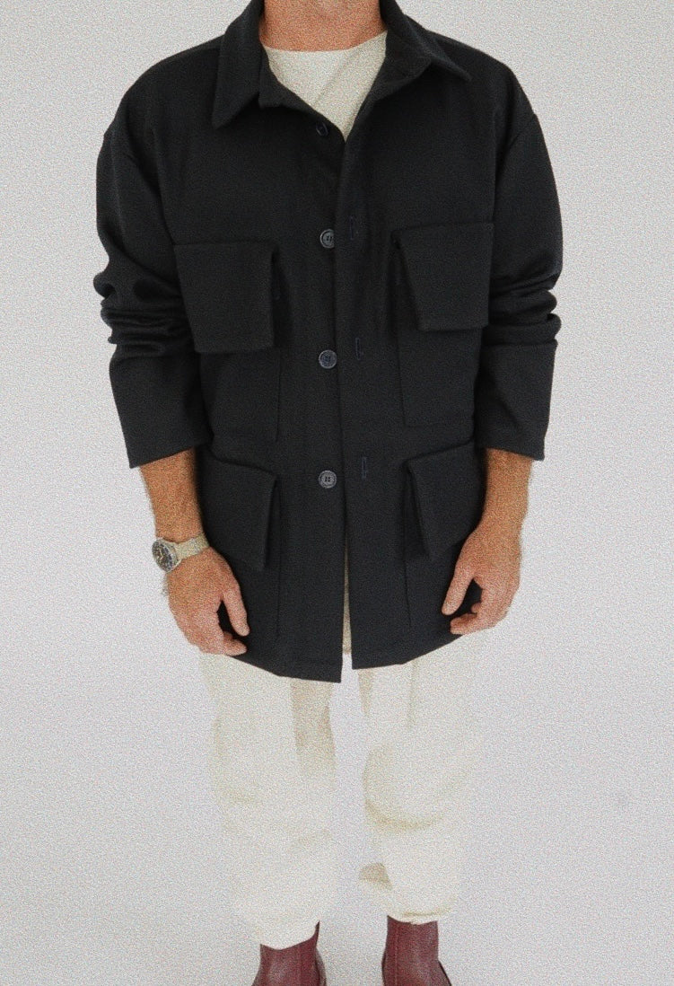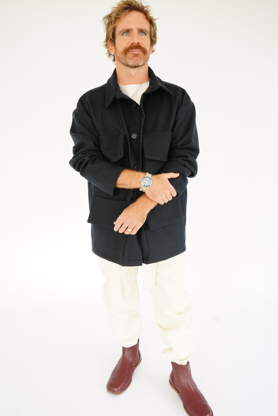 Introducing the Pari Jacket — a relaxed field jacket cut from 100% virgin wool in a deep, refined Navy and fully lined with 100% silk. At 11oz, the wool has a substantial yet fluid drape, offering natural warmth and an elegant structure that softens beautifully over time. Woven in small batches, the cloth carries a smooth, brushed hand and a subtle luster that catches the light. The silk lining adds comfort and movement, making this piece as polished as it is practical. Layer it over a tee, knit, or button-down — it’s true to its roots, and it will always work for you.