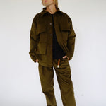 Introducing the Pari Pant — a relaxed pleated pant cut from 100% Pima cotton corduroy in a rich, natural Olive. At 9.75oz, the fabric has a dense yet soft hand with a fine wale texture that drapes cleanly and softens beautifully with wear. Woven and finished in small batches, each piece develops subtle tonal variation over time, giving it a lived-in, enduring character. With a mid-weight structure and easy silhouette, the Pari Pant moves effortlessly between laid-back and refined — wear them with a tee and sneakers for everyday ease or pair with the Pari Jacket for a cohesive, elevated look. True to its roots — it will always work for you.