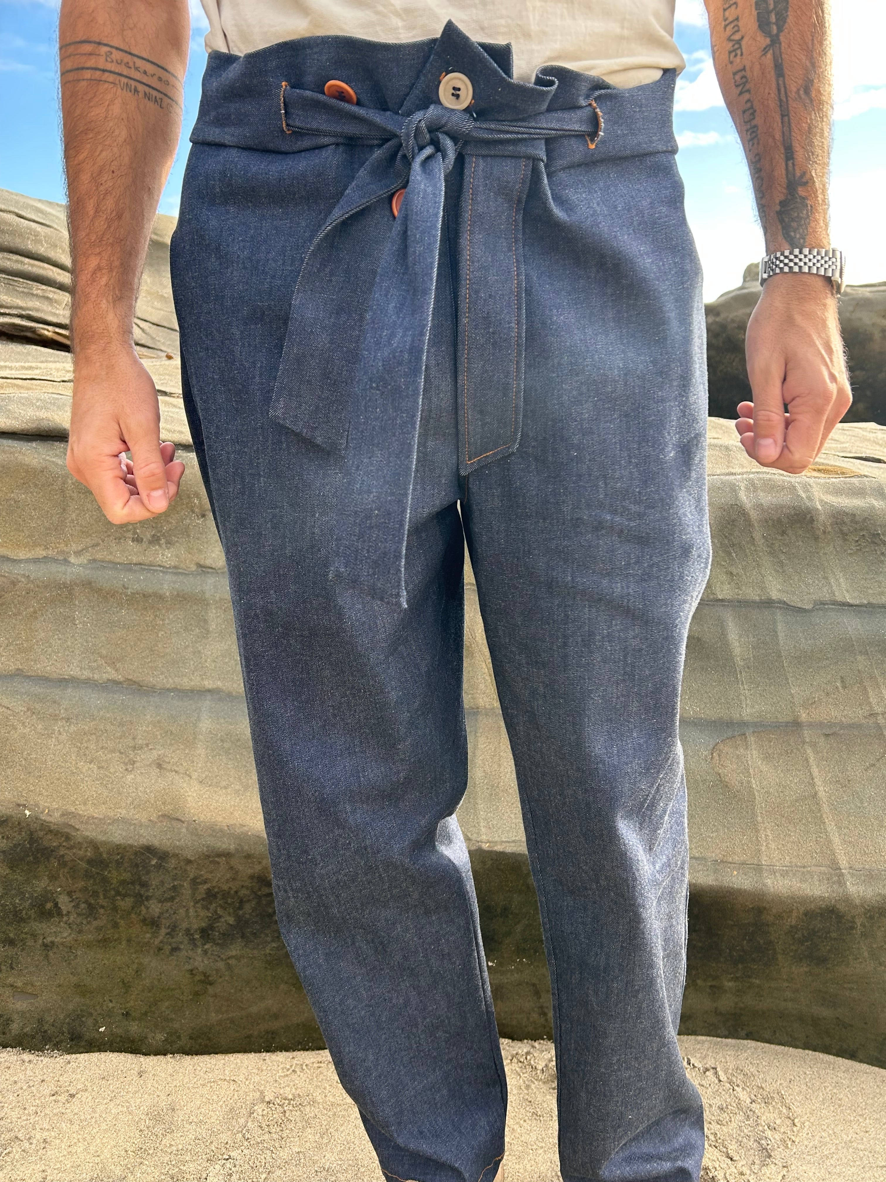 The Una Paperbag Pant is crafted from 100% Italian organic denim with a 12.5oz weight. Featuring an adjustable belt-tie for the perfect fit — you can wear these buttoned or tied at the waist. The most comfortable denim you'll ever own.